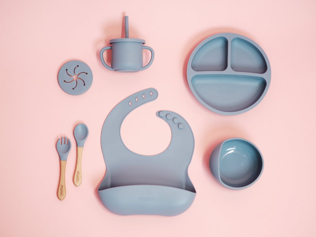 Munn. Silikónový detský jedálny set je kompletným riešením pre pohodlné a bezpečné stolovanie vašich malých jedincov. Tento set obsahuje všetko, čo potrebujete na prvé pokusy o samostatné jedenie vašich detí a zabezpečí, že jedlo zostane tam, kde má zostať.