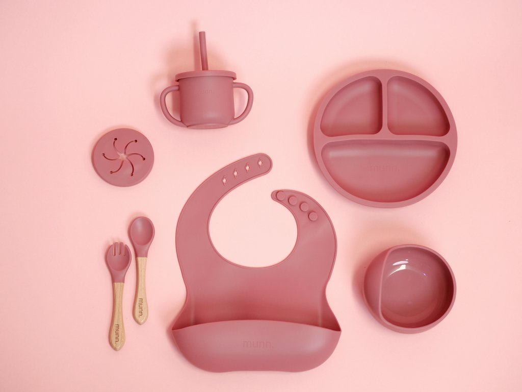 Munn. Silikónový detský jedálny set je kompletným riešením pre pohodlné a bezpečné stolovanie vašich malých jedincov. Tento set obsahuje všetko, čo potrebujete na prvé pokusy o samostatné jedenie vašich detí a zabezpečí, že jedlo zostane tam, kde má zostať.